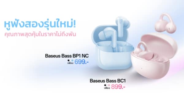ห้ามพลาด! สัมผัสคุณภาพเสียงสุดว้าวของ Baseus Bass BP1 NC เสียงดีมี ANC เพียง 699 บาท และ Baseus Bass BC1 ดีไซน์เกี่ยวหูเท่อินเทรนด์ เพียง 899 บาท ได้แล้ววันนี้ ผ่านช่องทางออนไลน์ LAZADA, Shopee และ TikTok พร้อมส่วนลดสุดพิเศษอีกมากมาย
