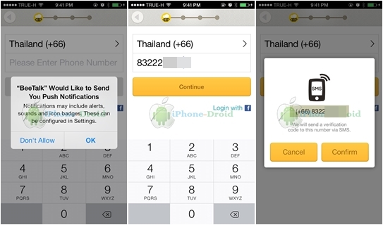 กด OK เพื่อให้มีการแจ้งเตือนนะครับ จากนั้นใส่เบอร์โทรมือถือเพื่อลงทะเบียนครับ ไม่ต้องใส่ 0 (ศูนย์) นะครับ ยกตัวอย่างเช่นเบอร์ 083222xxxx ก็ให้ใส่แค่ 83222xxxx จากนั้นกด Continue > Confirm ได้เลย