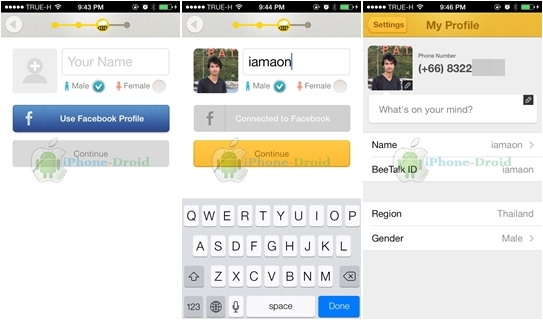 หลังจากที่ได้โค๊ดจาก sms มาแล้วให้กรอกลงทะเบียนใช้งานได้เลยครับเลือก Continue จากนั้นถ้าต้องการใช้ Profile จาก Facebook ให้เลือกที่ Use Facebook Profile ได้เลยนะครับสะดวกดีไม่ต้องกรอกข้อมูลเยอะ