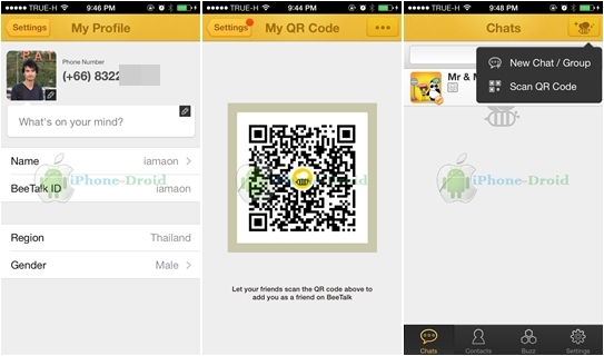 หรือจะแอดเพื่อนผ่านช่องทางต่าง ๆ ตามด้านล่างนี้ก็ได้นะครับ ไม่ว่าจะเป็น ID, ใกล้ ๆ สถานที่เราอยู่, เขย่าเพื่อแอดคอนแทค และขอย้ำว่าห้ามแอดผ่าน Mobile Contact เพื่อจะเป็นการ Invite ผ่าน sms ช่องทางนี้ไม่ฟรี การส่ง sms ไม่มีระบบไหนให้ส่งฟรีนะครับ บอกกันไว้ก่อน