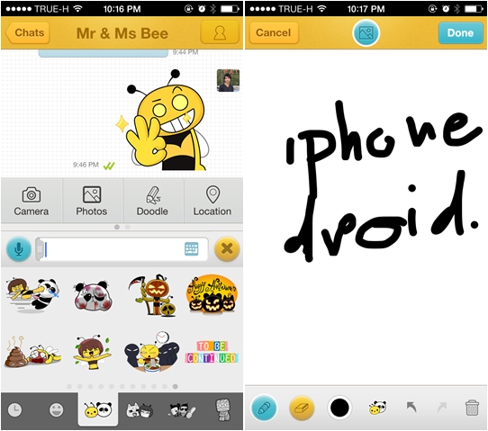 สามารถส่งรูปภาพทั้งถ่ายใหม่ รูปในอัลบั้ม หรือจะเขียนข้อความวาดภาพ ส่งข้อความเสียง รวมถึงส่งสถานที่ก็สามารถทำได้เช่นกันครับ