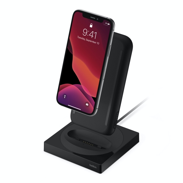 ที่ชาร์จแบตไร้สายแบบพกพาที่มาพร้อมแท่นวางรุ่นพิเศษ สามารถพกพาไปไหนได้อย่างสะดวกสบาย มีฟีเจอร์ในรูปแบบ 2 in 1 ที่ได้รับการรับรองมาตรฐาน Qi ที่มาพร้อมพาวเวอร์แบงค์ในตัวขนาด 10000mAh สำหรับการชาร์จขณะเดินทางและแท่นสำหรับชาร์จที่บ้านหรือที่ทำงาน เมื่อเสียบปลั๊กเข้ากับแท่นวางแล้วที่ชาร์จจะให้พลังงานสูงสุดถึง 7.5 วัตต์ รองรับสมาร์ทโฟนตั้งแต่รุ่น iPhone 8 ขึ้นไป สามารถชาร์จได้ทั้งโหมดแนวตั้งหรือแนวนอน โดยไม่จำเป็นต้องถอดเคสออก เพราะที่ชาร์จแบบไร้สายสามารถชาร์จผ่านเคสได้เกือบทุกชนิดที่หนาไม่เกิน 3 มม. เมื่อถอดปลั๊กออกจะใช้งานเป็นพาวเวอร์แบงค์แบบพกพา น้ำหนักเบา เหมาะอย่างยิ่งไว้ใช้ในระหว่างเดินทาง ด้วยความจุ 10000mAh ให้ชาร์จแบตเตอรี่กับอุปกรณ์ได้นานขึ้นอีกหลายชั่วโมง อีกทั้งยังมีพอร์ตเสริมแบบ USB-A ให้คุณได้ชาร์จอุปกรณ์ชิ้นที่สองพร้อมๆ กันด้วย
