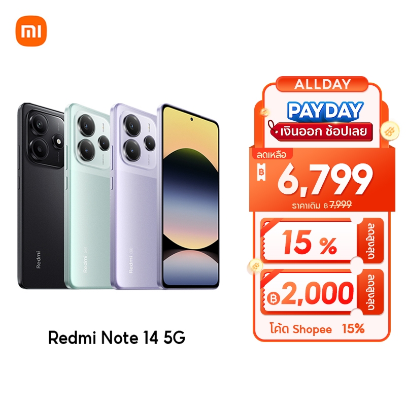 | Redmi Note 14 5G | 6,749 บาท (โปรโมชัน) | Dimensity 7025 Ultra | 108MP + 8MP + 2MP | 6.67″, AMOLED, 120Hz | คลิกที่นี่ |