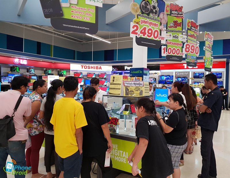 เมื่อเดินเข้าไปก็จะพบกับป้ายโปรโมชั่นงานเรียงราย โดดเด่นให้เห็นกันแต่ไกล มีลูกค้าเข้าเดินมาให้ความสนใจและเลือกช้อปมือถือกันอย่างไม่ขาดสาย