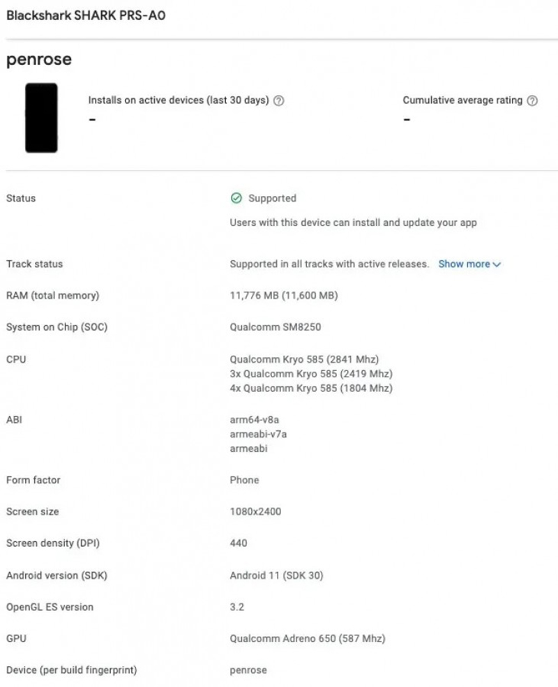 สมาร์ทโฟน Black Shark รุ่นใหม่เหมือนว่าจะเปิดตัวเร็วๆ นี้ ในโค๊ดเนม ‘penrose’ โมเดล PRS-A0 หลังจากที่ปรากฏบน Google Play Console โดยคาดว่าจะเป็น Black Shark 4 Pro ที่ยังคงรอคอยวันเปิดตัวอย่างเป็นทางการครับ