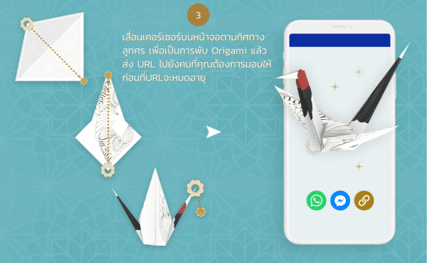 จดหมายโอริกามิ นำเสนอประสบการณ์การสื่อสารที่เข้าถึงใจผู้เยี่ยมชมงานเช่นเดียวกับการสื่อสารผ่านจดหมาย โดยใช้ “โอริกามิ” หรือศิลปะการพับกระดาษแบบดั้งเดิมของญี่ปุ่นและมีการเขียนข้อความเป็นสื่อแทนความในใจลงไปท่ามกลางการระบาดของโรคโควิด-19 ที่ทำให้การสื่อสารของผู้คนเป็นไปด้วยความยากลำบาก