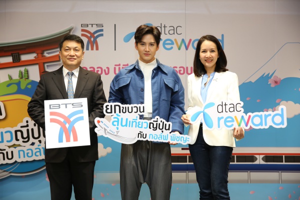 ความร่วมมือกับบีทีเอส ในโอกาสที่บีทีเอสฉลองครบรอบ 18 ปีเป็นการตอกย้ำเป็นพันธมิตรในเชิงกลยุทธ์กับรถไฟฟ้าบีทีเอสที่ร่วมกันสร้างสรรค์แคมเปญมาตั้งแต่ปี 2558 เพื่อนำความคุ้มค่า และความสะดวกสบายมาให้ ตอบรับการเดินทางของกลุ่มลูกค้าดีแทคที่เดินทางด้วยรถไฟฟ้าบีทีเอส ให้ได้สิทธิประโยชน์อย่างคุ้มค่า ล่าสุดจึงได้ร่วมกันจัดแคมเปญ ความสุขให้กับลูกค้าดีแทค รีวอร์ด และลูกค้าบีทีเอส ได้ลุ้นเที่ยวญี่ปุ่น กับกอล์ฟ พิชญะ”
