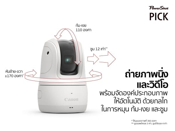 ล่าสุด แคนนอน ได้สร้างความตื่นตาตื่นใจให้วงการไอทีอีกครั้ง ด้วยการเปิดตัว Canon PowerShot PICK กล้องที่ขับเคลื่อนด้วยระบบอัจฉริยะ (AI) ด้วยคุณสมบัติสั่งการด้วยเสียง พร้อมช่วยจัดองค์ประกอบและถ่ายภาพให้อัตโนมัติได้ทั้งวิดีโอและภาพนิ่ง ด้วยระบบตรวจจับและติดตามใบหน้า รวมถึงมีระบบจดจำใบหน้า ทำให้สามารถบันทึกช่วงเวลาแห่งความสุขในทุกอิริยาบท ได้อย่างสมบูรณ์แบบ ทั้งยังออกแบบให้เข้ากับการใช้งานในชีวิตประจำวัน ไม่ว่าจะวางบนโต๊ะ ติดตั้งบนไม้เซลฟี่ ขาตั้งกล้อง และแม้กระทั่งบนจักรยานหรือรถจักรยานยนต์ ก็สามารถทำได้ ภาพที่ออกมาจะยังคมชัดด้วยระบบการคัดกรองภาพที่คุณภาพดีที่สุดของกล้อง ทำให้ได้ภาพที่ดีที่สุดในมุมมองที่ไม่ซ้ำใคร สำหรับกล้อง Canon PowerShot PICK สามารถใช้งานได้ทั้งในร่มและกลางแจ้งได้อย่างสะดวกสบาย โดยจะวางจำหน่ายในราคา 19,990 บาท