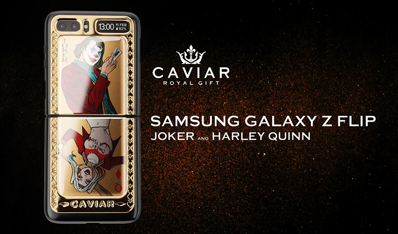 สำหรับลวดลายดังกล่าวก็มาจากบริษัท Caviar จากประเทศรัสเซียชื่อดังที่มักจะทำ iPhone เคลือบทองในราคาสูงมาแล้ว โดยตอนนี้บริษัทได้นำสมาร์ทโฟนและตัวละคร 2 ตัวดังมารวมกันเป็น CAVIAR SAMSUNG Z FLIP JOKER & HARLEY QUINN โดยวางจำหน่ายในราคา 5,210 ดอลลาร์ หรือประมาณ 162,000 บาท ซึ่งมีจำนวนจำกัดเพียง 54 เครื่องเท่านั้น