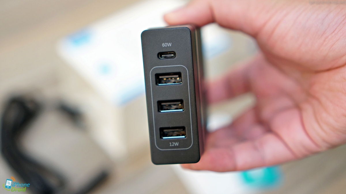 สำหรับพอร์ต USB-A อีก 3 ช่อง จ่ายไฟได้สูงสุด 12 วัตต์ แต่ถ้าชาร์จพร้อมกัน 3 เครื่องก็จะแบ่งกำลังไฟเฉลี่ยเท่าๆ กัน ซึ่งก็พอร์ตปกติที่เหมือนกับหัวชาร์จที่เราใช้ชาร์จสมาร์ทโฟนและแท็บเล็ต รวมถึงอุปกรณ์ต่างๆ นั่นเอง