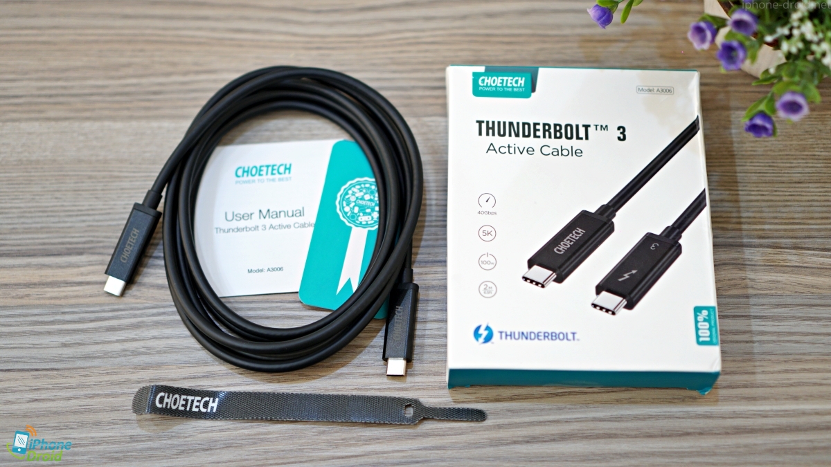 Thunderbolt 3 Cable ของ CHOETECH เป็นสายเคเบิลสำหรับถ่ายโอนข้อมูลความเร็วสูงสุดระดับ 40Gbps และสามารถใช้เป็นสายชาร์จด่วนได้ด้วย ซึ่งรองรับกำลังไฟสูงสุดถึง 100W