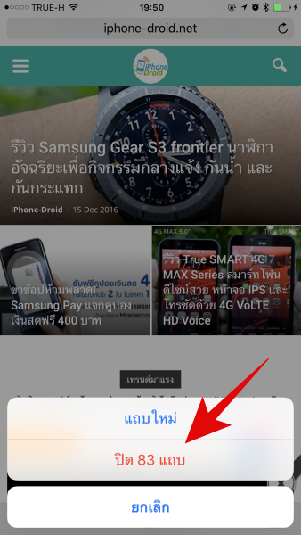 หลังจากที่แตะค้างไว้แล้วจะขึ้นมาแบบด้านล่างนี้ ให้เลือกปิด (จำนวน) แท็บที่ของแต่ละคนเปิดค้างไว้ได้เลย จากนั้นแอพจะปิดแท็บที่เปิดค้างไว้ทั้งหมด ซึ่งเราไม่ต้องเสียเวลามานั่งปิดเพื่อปิดทีละแท็บแล้ว