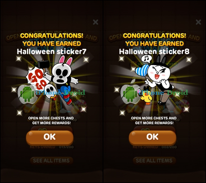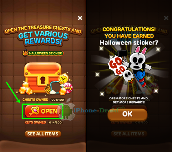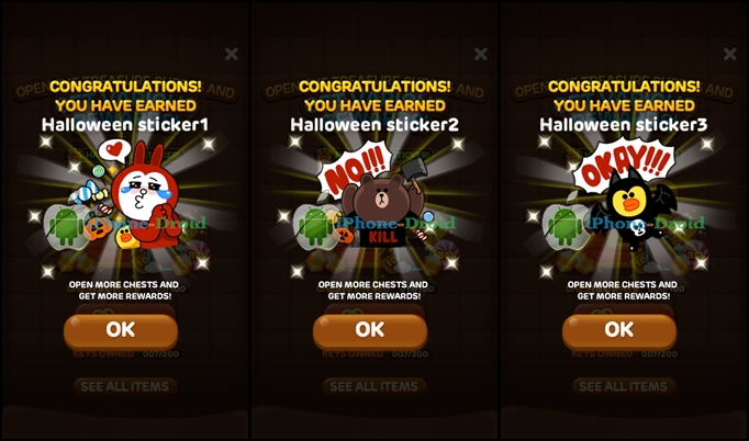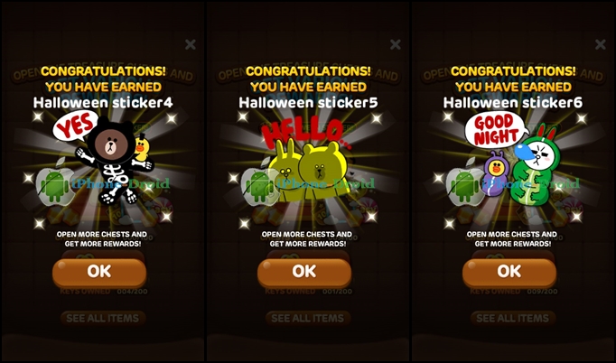- เมื่อสะสมหีบสมบัติได้แล้ว ก็เริ่มเปิดกันได้เลย ซึ่งการเปิดแต่ละครั้งอาจจะได้ไอเท็มอย่างอื่น การที่จะโหลดสติ๊กเกอร์ได้นั้น ต้องเปิดให้ได้ตัวสติ๊กเกอร์ทั้งหมด 8 ตัวนะครับ ขึ้นอยู่กับดวงจริง ๆ ถ้าหากหีบสมบัติหมดก็ต้องกลับไปเล่นเกมเพื่อสะสมใหม่นะครับ