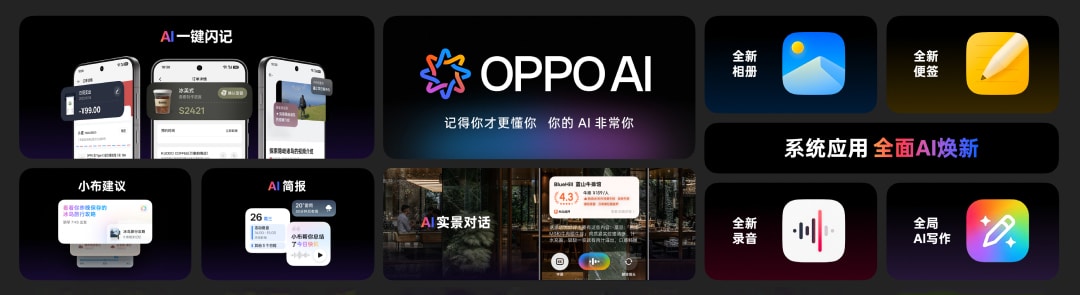 ฟีเจอร์ OPPO AI ก็จะได้การจัดการระบบที่ฉลาดยิ่งขึ้น มี AI Flash Memory รวมข้อมูลสำคัญที่เราบันทึกไว้ที่เดียว ค้นหาข้อมูล ไฟล์ในเครื่องได้เป็นระบบ ระเบียบกว่าเดิม มีฟีเจอร์ AI ในการตกแต่งภาพเพิ่มเติม อาทิ การเติมแสงในภาพ, การจัดการอัลบั้ม เป็นต้น