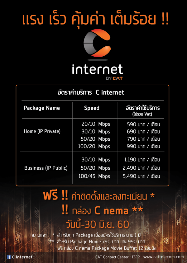 | C internet | 100/20 Mbps | 990 บาท |