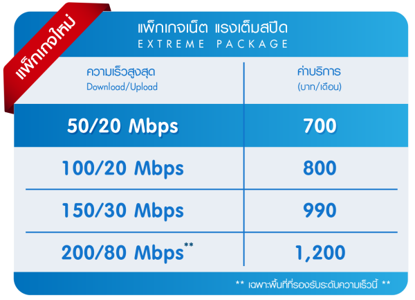 | 3BB | 100/30 Mbps | 900 บาท |