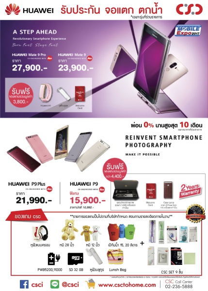 ห้ามพลาด! กับโปรโมชั่นจากมือถือชั้นนำในราคาสุดพิเศษ พร้อมผ่อนสบายๆ ภายในงาน Thailand Mobile Expo 2017 ณ.ศูนย์ประชุมแห่งชาติสิริกิติ์ ซึ่งทาง CSC ไม่ยอมเป็นรองใครในเรื่องการจัดของสมนาคุณได้อย่างเต็มขบวนทัพ ไม่ว่าจะเป็น น้องตุ๊กตาหมีขนนุ่มยักษ์ขนาด 28 นิ้ว กระเป๋าสุดเท่ห์กันน้ำได้ในขนาดใหญ่สูงสุดถึง 20 ลิตร SARAMONIC SmartMic ไมค์อัดเสียงตัวจิ๋วในคุณภาพไม่จิ๋ว ถ้ายังไม่หนำใจ ถ้าอยากดูความคับคั่งของสมนาคุณกันได้แบบจัดเต็มที่บูธ CSC (CM6 M2 และ PM6/1) และภายในบูธต่างๆของแบรนด์มือถือชั้นนำ ตั้งแต่วันที่ 9 – 12 กุมภาพันธ์ นี้