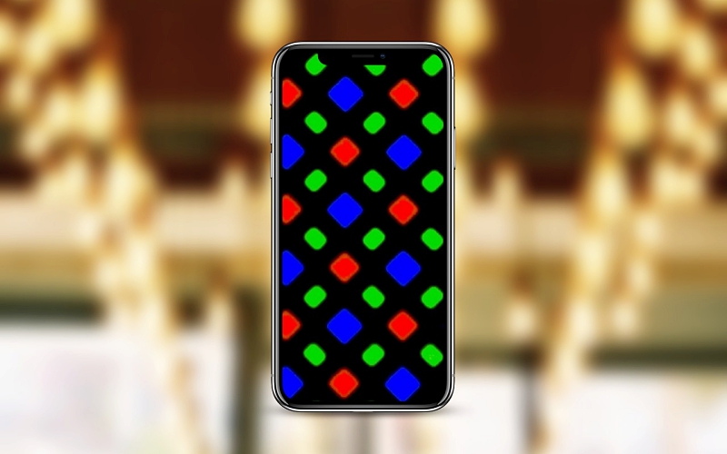 การจัดเรียงพิกเซลในหน้าจอของ iPhone X เป็นแบบ Diamond ทำให้แต่ละพิกเซลสีแดง สีเขียว และสีน้ำเงินอยู่ในรูปแบบมุมเอียง 45 องศา ซึ่งเป็นการจัดเรียงพิกเซลในรูปแบบเดียวกับ Galaxy Note8 โดยให้มุมมองที่กว้างและเห็นชัดเจนจากทุกมุมมอง และสะท้อนแสงน้อยมากสำหรับการใช้งานกลางแจ้ง