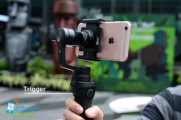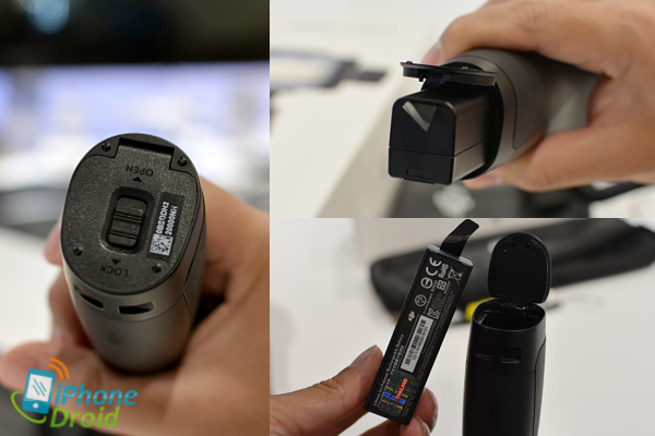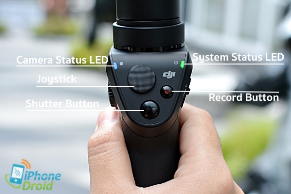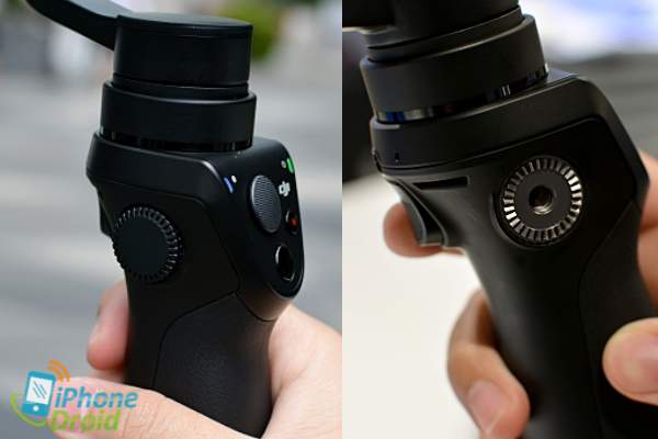 • ที่ด้ามจับของตัว OSMO Mobile มีปุ่มสำหรับสั่งงานครบ ไม่ว่าจะเป็นปุ่มหมุนกล้องไปตามทิศทางต่าง ๆ, ปุ่มสำหรับถ่ายวิดีโอ, ปุ่มถ่ายภาพ และปุ่มสลับกล้องหน้า-หลัง