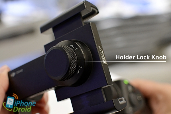 สำหรับการวางสมาร์ทโฟนให้เข้าล็อคกับที่วางบนตัว DJI OSMO Mobile ทำได้โดยการหมุนปรับตัวล็อคด้านหลัง (Holder Lock Knob) เพื่อยึดให้แน่นพอดีกับตัวสมาร์ทโฟน และไม่ต้องกังวลว่าตัวล็อคจะทำให้สมาร์ทโฟนเกิดรอย เพราะบริเวณตัวล็อคเป็นยางนิ่ม และสามารถวางสมาร์ทโฟนขณะใส่เคสอยู่ก็ได้