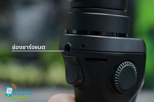 สำหรับการชาร์จไฟแบตเตอรี่สามารถเสียบเข้ากับช่องชาร์จที่ตัว DJI OSMO Mobile ได้เลย ไม่ต้องแกะถอดแบตเตอรี่ออกมาก็ได้ ซึ่งตรงนี้ก็ช่วยเพิ่มความสะดวกให้กับผู้ใช้งานที่อาจจะใช้งานไปด้วยและก็ชาร์จไฟไปพร้อม ๆ กันได้ด้วย เพราะจริง ๆ แล้วหากใช้ถ่ายวิดีโอนอกสถานที่ก็สามารถชาร์จไฟจากตัว Power Bank ได้