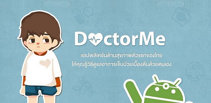 พบกับ DoctorMe แอปพลิเคชันด้านสุขภาพบน Android ตัวแรกของคนไทย ให้คุณรู้วิธีดูแลตัวเองจากอาการเจ็บป่วยเบื้องต้นด้วยตนเอง เช่น เป็นไข้ เจ็บคอ ปวดหัว ปวดท้อง พร้อมข้อมูลประกอบให้รู้จักกับโรคและการใช้ยา