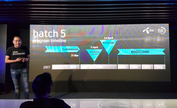ดีแทค แอคเซอเลอเรท batch 5 เปิดรับสมัครผลงานตั้งแต่วันนี้ – 31 มีนาคม 2560 ผู้ที่สนใจสามารถส่งผลงานนำเสนอแนวคิด หรือเข้ามาดูรายละเอียดและกรอกใบสมัครได้ที่ http://accelerate.dtac.co.th/พบกิจกรรมพิเศษ Pitch Clinic ให้คำแนะนำในการเตรียม proposal ในวันที่ 25 มีนาคม 2560 โดยจะมีการคัดเลือกผลงาน 20 ทีมที่ผ่านรอบแรก ในวันที่ 11 เมษายน 2560 หลังจากนั้นจัดนำเสนอผลงานต่อหน้าคณะกรรมการเพื่อคัดทีมที่ได้เข้าสู่ Intensive Bootcamp (Pitch day) ในวันที่ 24 เมษายน 2560 และจะเริ่มคอร์สอบรม Intensive Bootcamp ตั้งแต่เดือนพฤษภาคม– สิงหาคม 2560 และนำเสนอผลงานรอบสุดท้ายประกาศผลในวัน Demo day ในเดือนสิงหาคมนี้