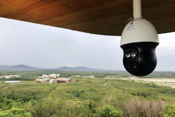สำหรับกล้องตรวจการณ์อัจฉริยะที่ ปตท. นำมาติดตั้งที่ EECi เป็นกล้องมีความละเอียดสูง Ultra-HD ใช้งานติดตั้งประจำที่ด้วยพลังซูมถึง 55 เท่า เพื่อตรวจการณ์ ค้นหา ทั้งกลางวันและกลางคืน โดยสามารถควบคุมจากระยะไกล ถ่ายทอดภาพเคลื่อนไหวและไฟล์เสียงแบบเรียลไทม์ ด้วยข้อมูลความละเอียดสูงที่ต้องรับ-ส่งผ่านเครือข่ายมีขนาดมหาศาลจำเป็นต้องใช้การรับส่งผ่านจากสัญญาณดีแทค 5G ด้วยคลื่น 26 GHz เพื่อตอบโจทย์ให้กล้องตรวจการณ์อัจฉริยะได้ใช้งานได้เต็มประสิทธิภาพ ซึ่งให้ศักยภาพได้เหนือกว่าการเชื่อมต่ออินเทอร์เน็ตไร้สายและผ่านไฟเบอร์ในรูปแบบอื่น