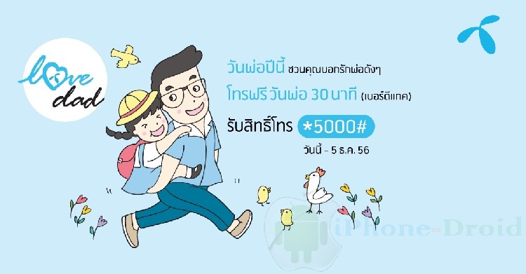 วันพ่อปีนี้บอกรักพ่อดัง ๆ ดีแทคให้โทรฟรี 30 นาทีหาเบอร์ดีแทคในวันพ่อ 5 ธันวาคม 2556