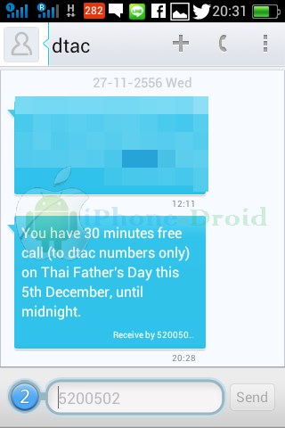 ลูกค้าดีแทคและแฮปปี้รับสิทธิ์โทร *5000# โทรออก เริ่มลงทะเบียนเพื่อรับสิทธิ์ได้ตั้งแต่วันนี้ 26 พ.ย. – 5 ธ.ค. 56 และใช้สิทธิ์ได้ในวันที่ 5 ธ.ค. 56 ถึงเที่ยงคืนนะครับ