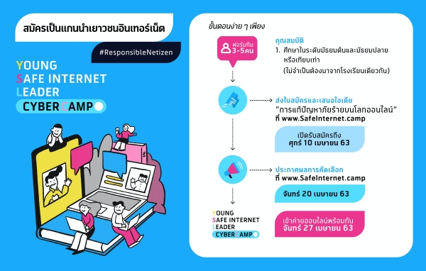 สำหรับค่าย YSLC Version 2.0 นี้ เปิดรับสมัครแล้ววันนี้ถึงวันที่ 10 เม.ย. 2563 ที่ https://www.safeinternet.camp/ ประกาศผลการคัดเลือก 20 เม.ย. พร้อมร่วมเข้าค่ายออนไลน์ตั้งแต่วันที่ 27 เม.ย. เป็นต้นไป