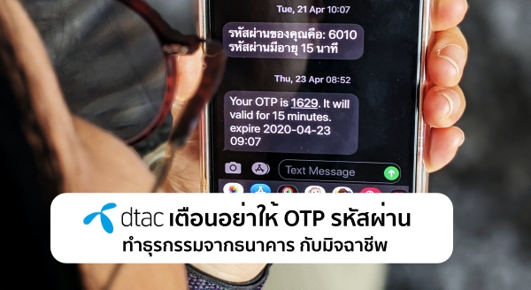 ดีแทคแจ้งเตือนลูกค้า ระวังภัยมิจฉาชีพ ที่โทรมาแอบอ้างเป็นดีแทคผู้ให้บริการโทรศัพท์มือถือ แล้วขอข้อมูลรหัสผ่านในการทำธุรกรรมจากธนาคาร จากกรณีที่มีข่าวเภสัชกรโรงพยาบาล ถูกมิจฉาชีพโทรมาแอบอ้างว่าเป็นผู้ให้บริการโทรศัพท์มือถือ แจ้งว่ามีหมายเลขโทรศัพท์ซ้ำกัน 2 หมายเลข โดยจะทำการเปลี่ยนแปลงหมายเลขโทรศัพท์ให้ เภสัชกรจึงหลงเชื่อทำตาม และยังได้ให้ข้อมูลรหัสผ่านใช้ครั้งเดียวที่ระบบสร้างขึ้นเพื่อความปลอดภัยในการทำธุรกรรมทางอินเทอร์เน็ตหรือ OTP (One time password) ให้กับมิจฉาชีพ แล้วโดนนำข้อมูลดังกล่าวไปใช้กับอีแบงค์กิง ไปโอนเงินในบัญชีธนาคารจนเกิดความเสียหายกับเจ้าของหมายเลขตามที่เป็นข่าว