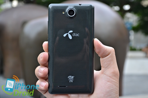 ฝาหลังของ dtac Phone Eagle 4.5 มีลักษณะพื้นผิวเรียบมันวาว มีกล้องหลังความละเอียด 8 ล้านพิกเซล พร้อมแฟลช LED