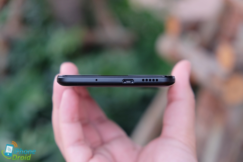 ขอบด้านล่างตัวเครื่องมีไมโครโฟน, พอร์ตเชื่อมต่อแบบ micro USB และลำโพง