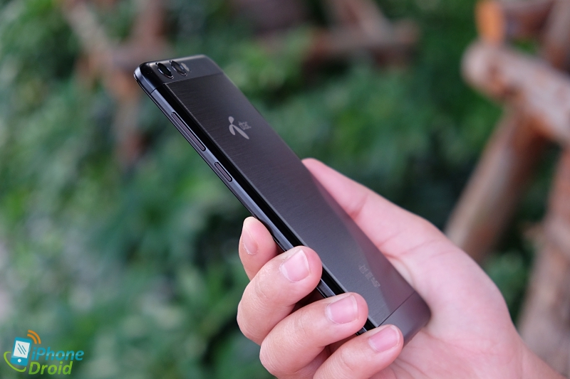 ขอบด้านซ้ายมีช่องถาดใส่ซิมแบบไฮบริด รองรับซิมการ์ดขนาด Nano SIM ทั้ง 2 ช่องหรือจะเลือกใส่ microSD card แทนซิม 2 ก็ได้เช่นกัน