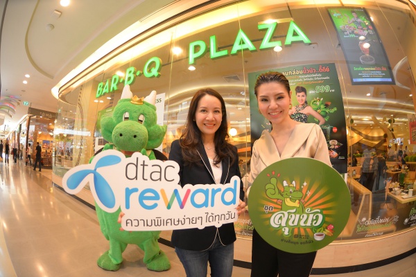ลูกค้าดีแทค รีวอร์ดมานัวกันได้แล้วที่ร้าน Bar B Q Plaza ทุกสาขาทั่วประเทศ (เฉพาะสาขาที่ให้บริการด้วยกระทะทองเหลือง) โปรโมชั่นนี้ลูกค้าดีแทครีวอร์ดสามารถใช้ได้ 1 สิทธิ ต่อ 1 หมายเลข ต่อเดือน รวมทั้งหมด 49,000 สิทธิตลอดโครงการ รวมมูลค่าทั้งสิ้น 1,000,000 บาท ตั้งแต่วันที่ 1 มิ.ย. ถึง 16 ก.ค. นี้