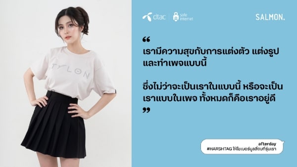 นางอรอุมา ฤกษ์พัฒนาพิพัฒน์ ผู้อำนวยการอาวุโส สายงานสื่อสารองค์กรและความยั่งยืน บริษัท โทเทิ่ล แอ็คเซ็ส คอมมูนิเคชั่น จำกัด (มหาชน) หรือดีแทค กล่าวว่า “ดีแทคให้ความสำคัญกับวันต่อต้านไซเบอร์บูลลี่สากลต่อเนื่องมาเป็นปีที่ 7 ในปีนี้ ด้วยความตระหนักถึงหน้าที่ความรับผิดชอบในฐานะบริษัทที่ให้บริการอินเทอร์เน็ตและบริการดิจิทัล ต่อความเสี่ยงบนโลกออนไลน์ที่มีผู้ใช้งานมากกว่า 28% ในไทยเป็นเด็กและเยาวชน โครงการ dtac Safe Internet ยังคงเดินหน้าให้ความรู้สร้างภูมิคุ้มกันบนโลกออนไลน์ และเป็นภาคีสำคัญในการร่วมหาทางออกและลดความรุนแรงจากภัยออนไลน์ ซึ่งไซเบอร์บูลลี่เป็นประเด็นปัญหาในลำดับต้นๆ ที่เยาวชนไทยตระหนักถึงอันตรายและอยากเข้ามามีส่วนร่วมในการแก้ปัญหา ในปีนี้ ดีแทคได้ร่วมกับสำนักพิมพ์แซลมอน หยิบข้อเสนอของเยาวชนใน ‘สัญญาใจวัย Gen Z’ มาถ่ายทอดเป็นเรื่องสั้นที่เปิดเผยถึงค่านิยม ทัศนคติ และประสบการณ์ของคนรุ่นใหม่ และสอดแทรกด้วยแนวทางปฏิบัติที่ใช้ได้จริงทั้ง 23 ข้อ เพื่อหยุดไซเบอร์บูลลี่ ซึ่งรายได้ทั้งหมดจากการจัดจำหน่ายหนังสือ ดีแทคจะส่งต่อให้สำนักพิมพ์แซลมอน (Salmon Books) ทั้งหมดโดยไม่หักค่าใช้จ่าย”