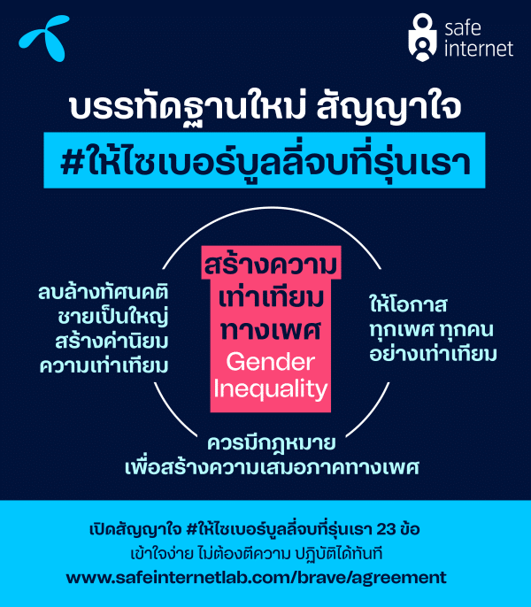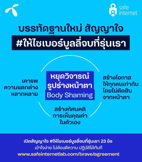 สำหรับผู้ที่สนใจ “ฟัง” เสียงของคนรุ่นใหม่ฉบับเต็ม สามารถอ่านความคิดพวกเขาได้ที่ https://www.safeinternetlab.com/brave/agreement เข้าใจง่าย นำไปปฏิบัติได้ทันที ไม่ต้องตีความ ร่วมส่งเสียงต่อได้ เพื่อสร้างสังคมออนไลน์แบบที่รุ่นเราอยากเห็น