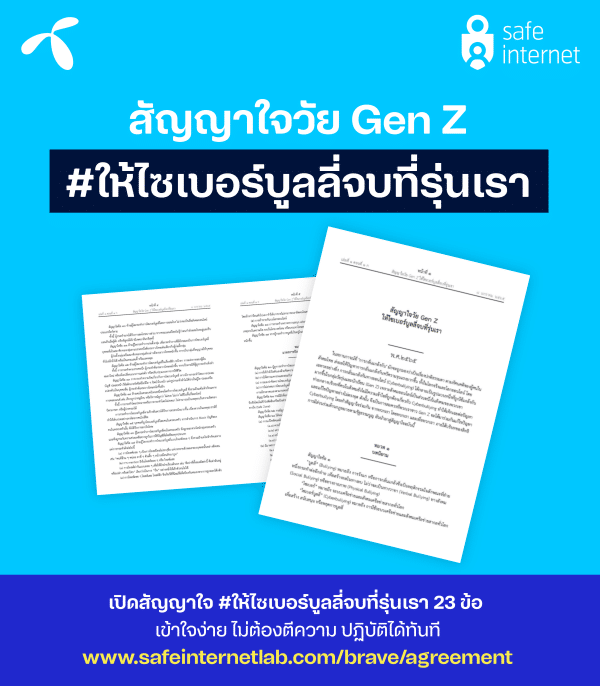 สำหรับผู้ที่สนใจ “ฟัง” เสียงของคนรุ่นใหม่ฉบับเต็ม สามารถอ่านความคิดพวกเขาได้ที่ https://www.safeinternetlab.com/brave/agreement เข้าใจง่าย นำไปปฏิบัติได้ทันที ไม่ต้องตีความ ร่วมส่งเสียงต่อได้ เพื่อสร้างสังคมออนไลน์แบบที่รุ่นเราอยากเห็น