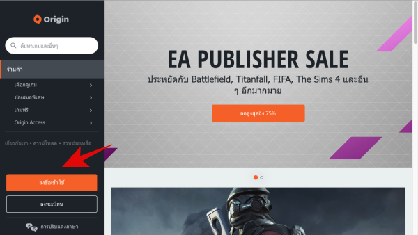 1.สมัครบัญชี (ในกรณีที่ยังไม่มี) คลิก www.origin.com “ลงทะเบียน” ทำตามขั้นตอนที่หน้าเว็บแนะนำ