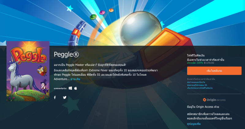 มีเกมแจกฟรีจาก EA มาฝากกันครับ ซึ่งสามารถโหลดได้ทั้งบน Windows และ Mac ราคาขายเกม Peggle ปกติ 170 บาท