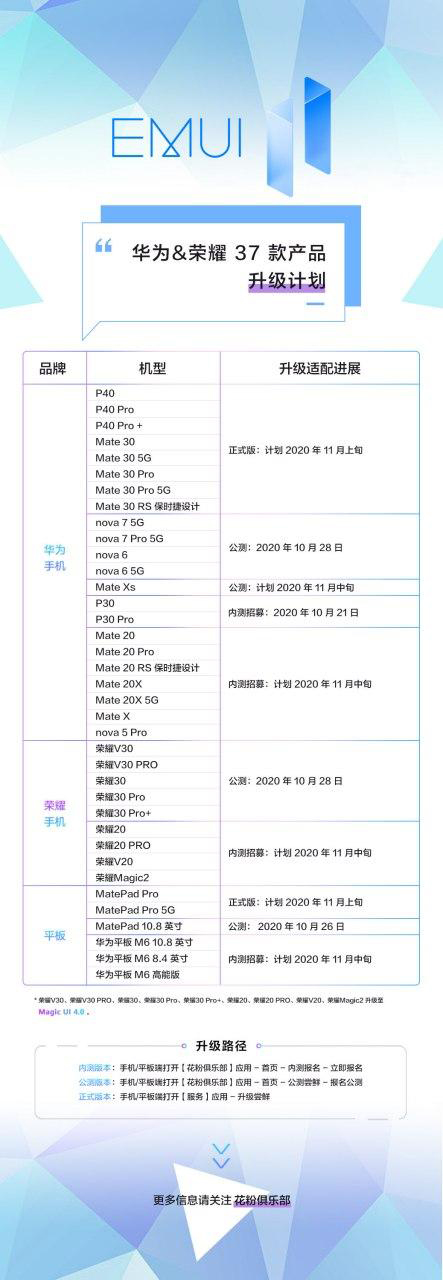 หลังจากที่ Huawei เปิดตัว EMUI 11 ตั้งแต่วันที่ 10 กันยายนที่ผ่านมา ล่าสุด ก็มีการปล่อยตรางอัปเดทให้กับสมาร์ทโฟนรุ่นต่างๆ ออกมาเป็นที่เรียบร้อยแล้ว โดยมีทั้งหมดถึง 37 รุ่นที่จะได้ใช้งาน