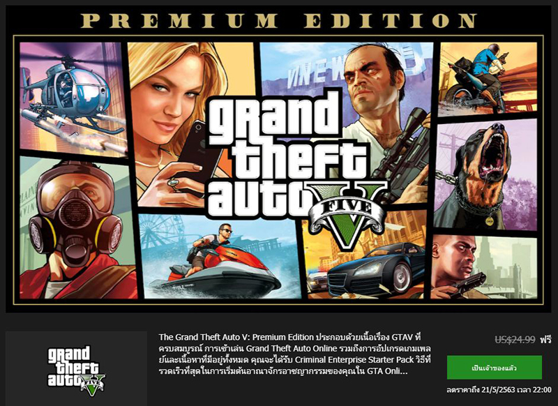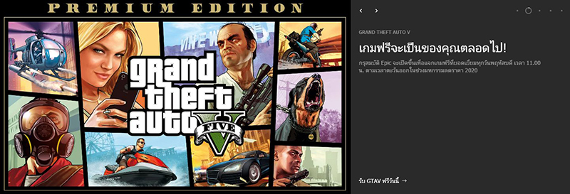 ใครที่เป็นคอเกมบน PC แล้วยังไม่มีเกม Grand Theft Auto V หรือ GTA V ทาง Epic Games ก็ถือว่าใจป้ำทำการแจกฟรีผ่านร้านค้าของตัวเองแล้ว