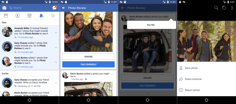 ระบบจดจำใบหน้าของ Facebook เริ่มเปิดใช้งานครั้งแรกมาพร้อมฟีเจอร์ในการระบุตัวตนให้ผู้โพสต์สามารถแท็กชื่อเพื่อนได้ทีจากรายชื่อเพื่อนที่ระบบแนะนำ และในวันนี้ความสามารถนั้นได้พัฒนาไปอีกขั้น เมื่อเพื่อนโพสต์รูปภาพที่ถ่ายด้วยกันแต่ไม่ได้แท็กชื่อในรูปภาพ ระบบของ Facebook จะทำการแจ้งเตือนไปยังเจ้าของรูปภาพทุกคนที่อยู่ในรูปภาพนั้น เพื่อให้เข้าไปมาดูและสามารถแท็กชื่อตนเองลงไปได้