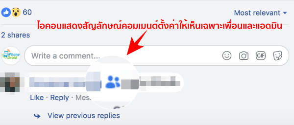 โดยการตั้งค่าการคอมเมนต์สามารถเลือกได้ว่า คอมเมนต์นั้นๆ จะเห็นเฉพาะ “เพื่อนและผู้ดูแลเพจ” หรือ “สาธารณะ” ถ้าเลือกเป็นสาธารณะทุกๆ คนที่ใช้ Facebook ก็จะสามารถเห็นคอมเมนต์ได้