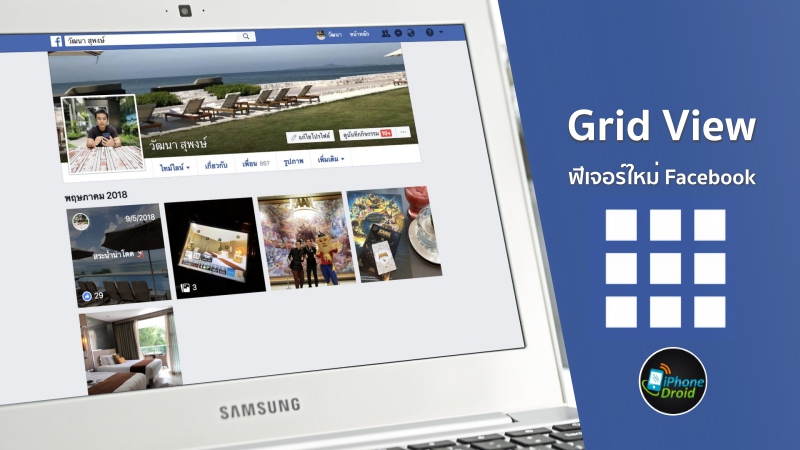 ดูเหมือนว่า Facebook จะเพิ่มฟีเจอร์ใหม่เข้ามาให้กับผู้ใช้งานอีกแล้ว ซึ่งเป็นเมนูตัวเลือกสำหรับดูโพสต์ต่างๆ ของตนเองในรูปแบบตารางหรือ Facebook Grid View ในหน้าโปรไฟล์ส่วนตัว ซึ่งจะแสดงผลเหมือนกับแกลเลอรี่รูปภาพ