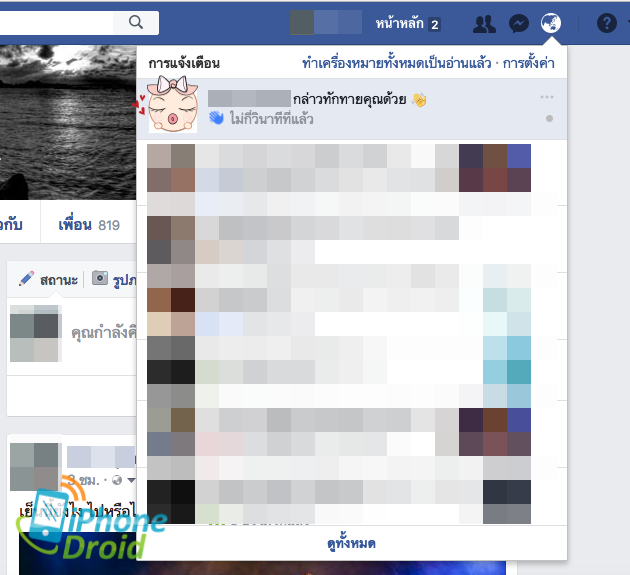 เมื่อมีผู้ใช้งานคลิกที่ปุ่ม สวัสดี ระบบจะแจ้งเตือนเราทันทีว่าใครกำลังส่งการทักทายไปหาเราที่ไอคอนแจ้งเตือน สามารถคลิกจากรายการแจ้งเตือนไปยังหน้าโปรไฟล์ส่วนตัวของคนนั้นได้ทันที