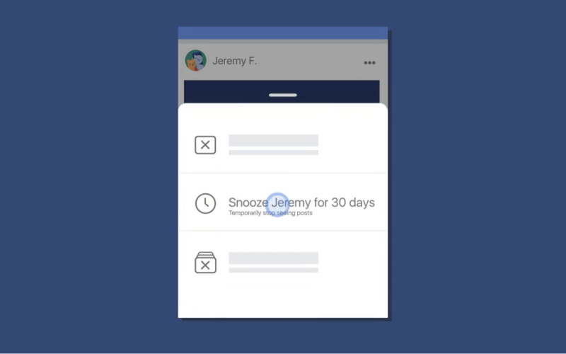 Facebook เพิ่มฟีเจอร์ Snooze สำหรับเลิกติดตามบุคคล เพจ หรือกลุ่มได้ชั่วคราวเป็นระยะเวลา 30 วัน เพื่อช่วยจัดการโพสต์ในหน้าฟีดข่าวตามความสนใจได้ด้วยตนเอง
