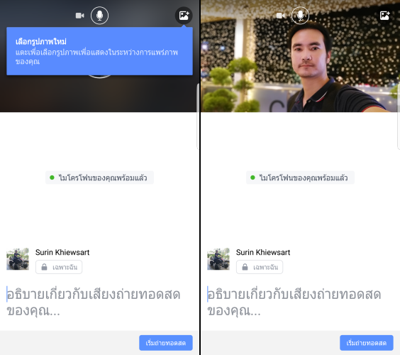 นอกจากนี้ยังสามารถเลือกภาพจากอัลบั้มมาเป็นภาพสำหรับใช้ในการถ่ายทอดสดด้วยนะครับ ถ้าในกรณีที่ไม่เลือกภาพมาใส่ ระหว่างที่ถ่ายทอดสดจะโชว์ภาพโปรไฟล์ของเราครับ