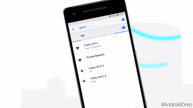 Android 8.1 Oreo เพิ่มฟีเจอร์บอกความเร็วของสัญญาณ Wi-Fi สาธารณะก่อนทำการเชื่อมต่อ เพื่อให้ผู้ใช้งานทราบว่าตัวไหนรับส่งข้อมูลได้รวดเร็ว เพื่อให้การตัดสินใจเชื่อมต่อใช้งานได้ตามความต้องการ